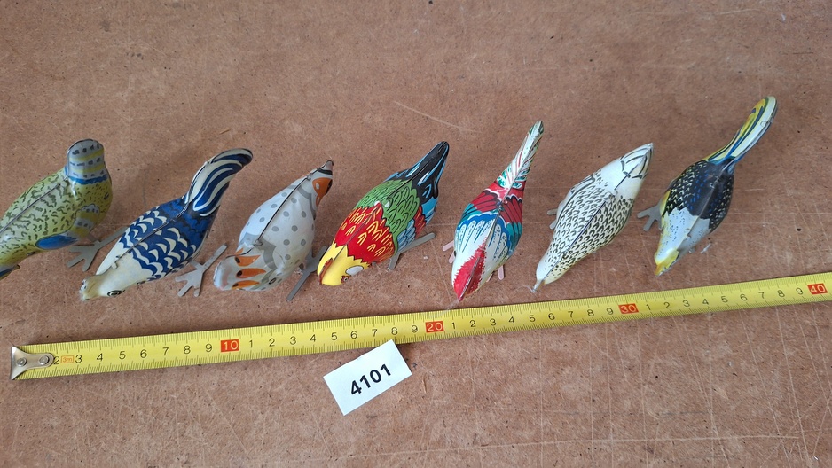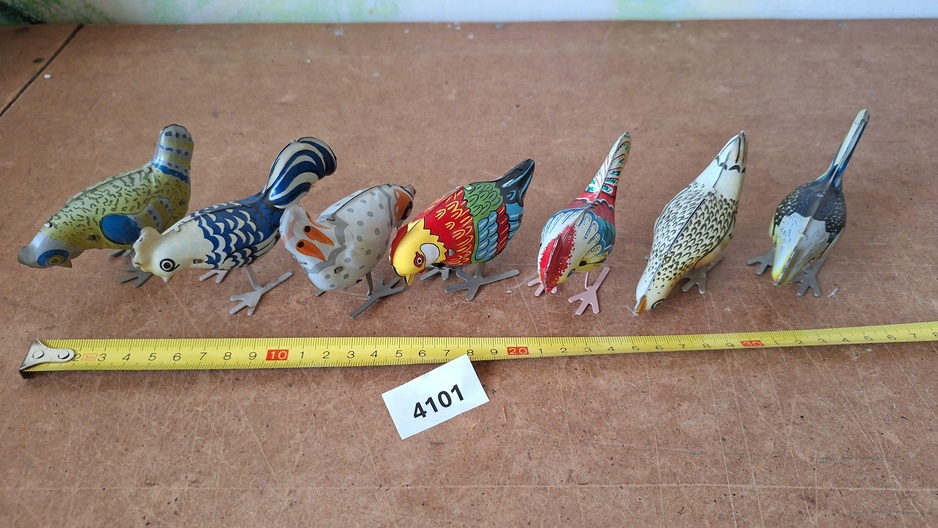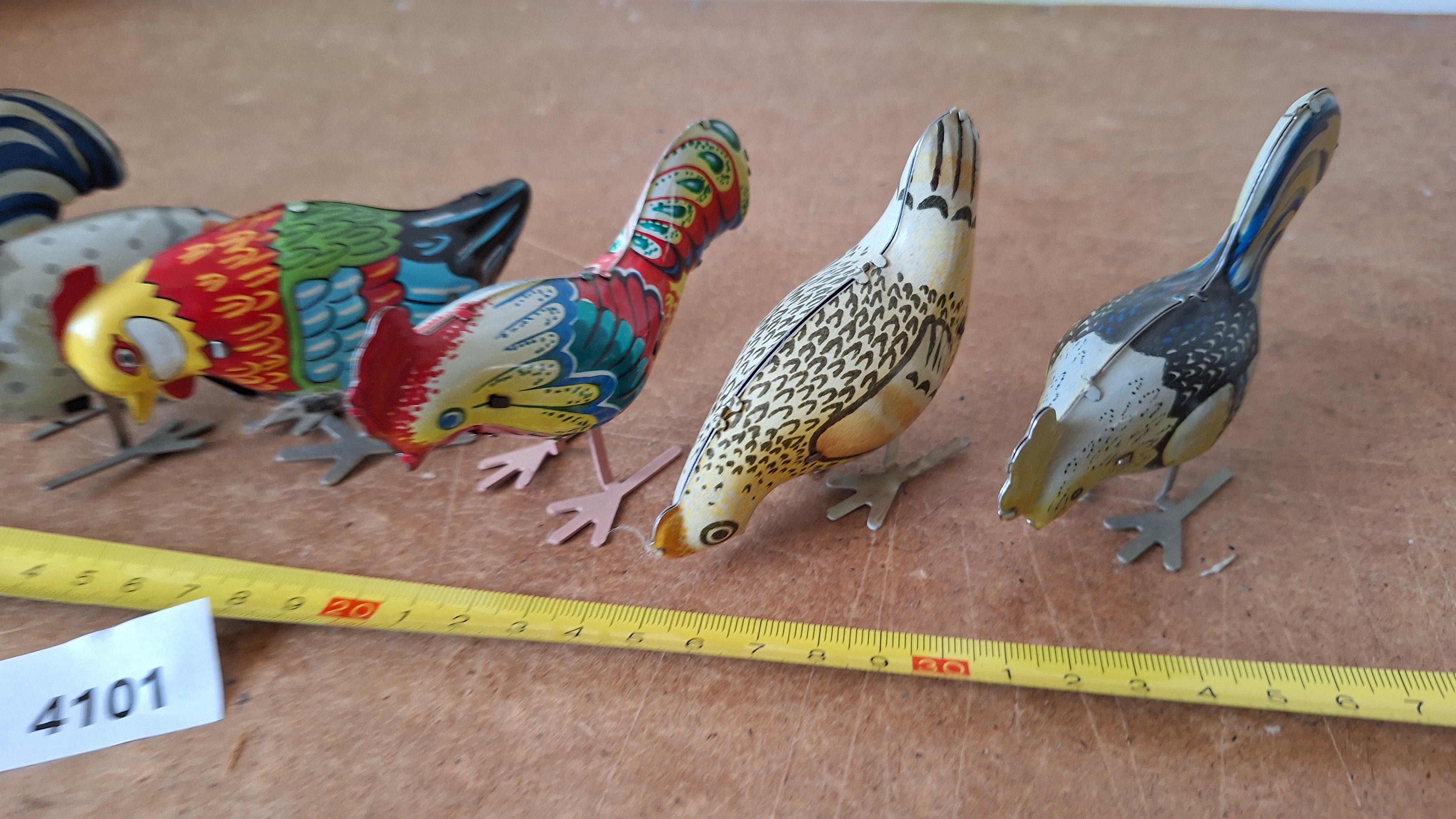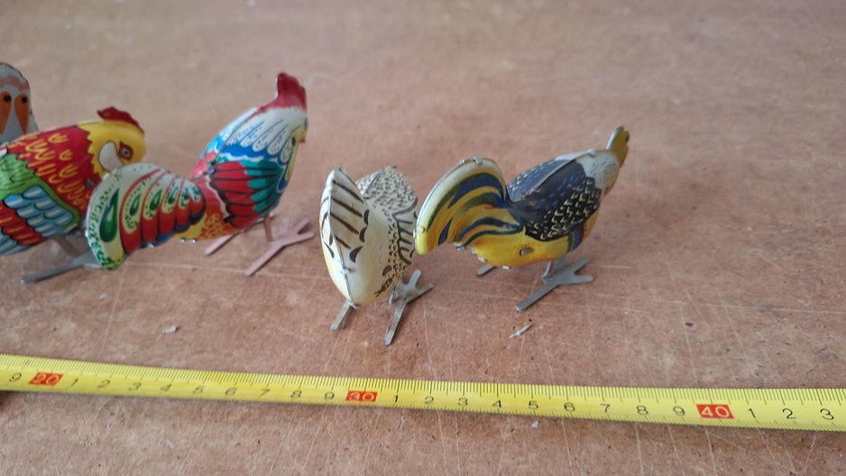 Opwindbaar blikken speelgoed Kippen 7 stuks