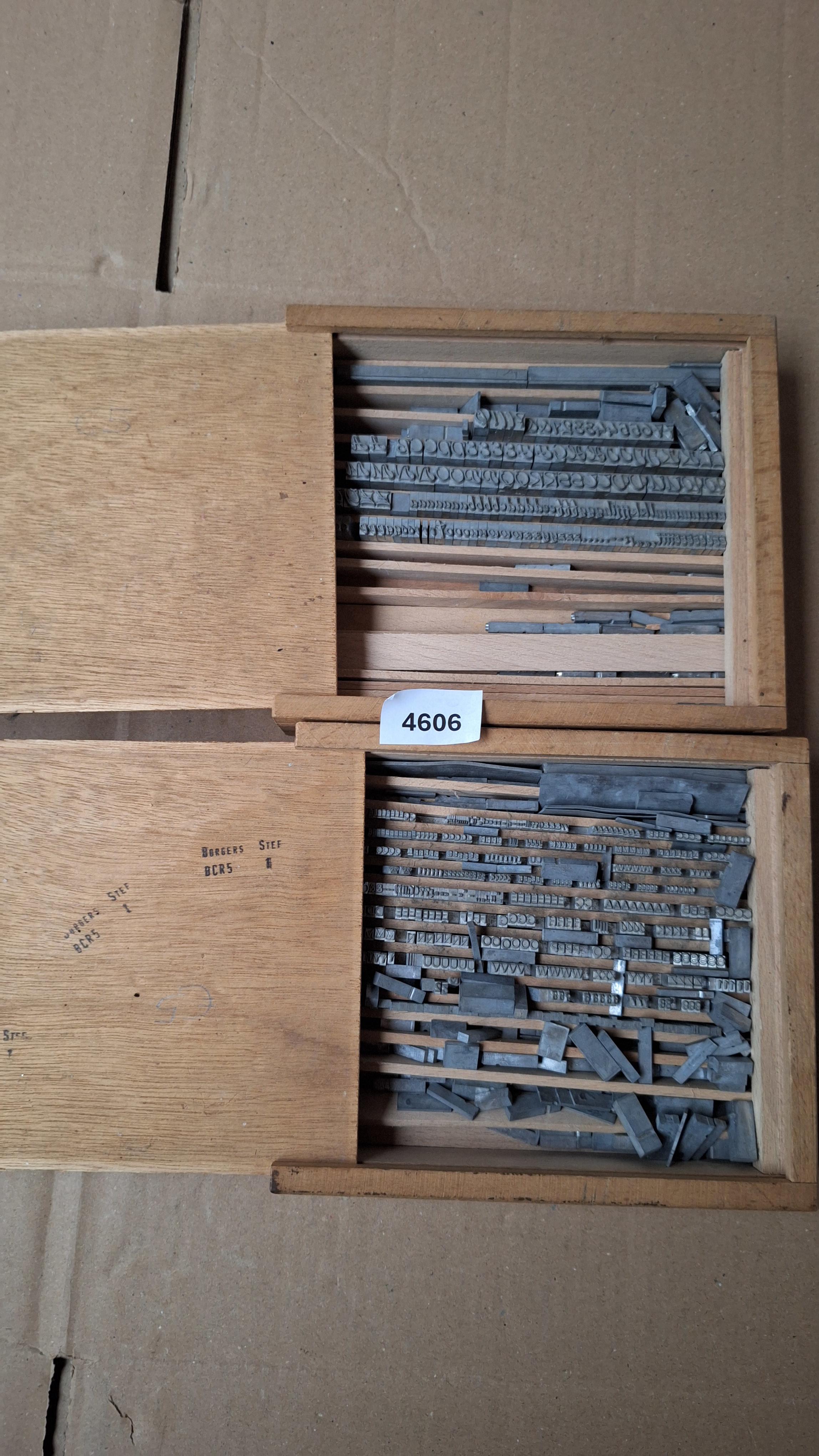 Houten dozen met drukletters 2 dozen