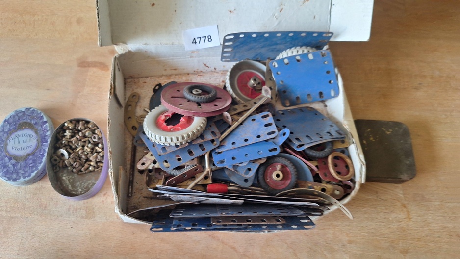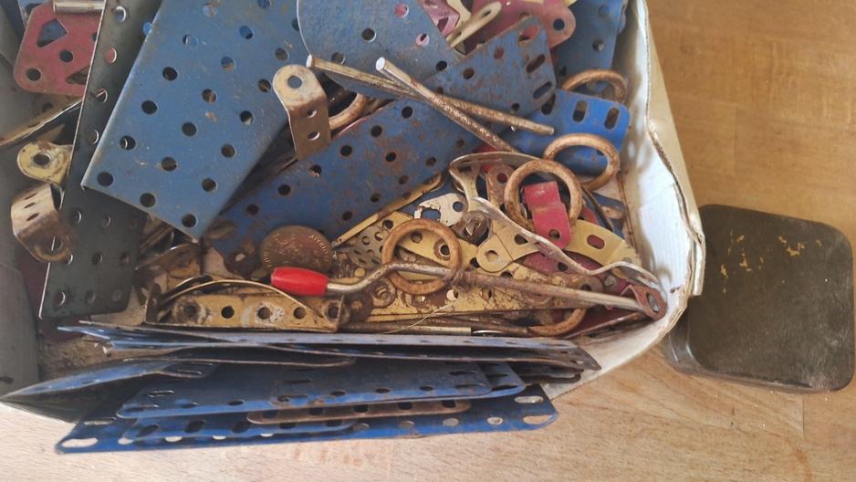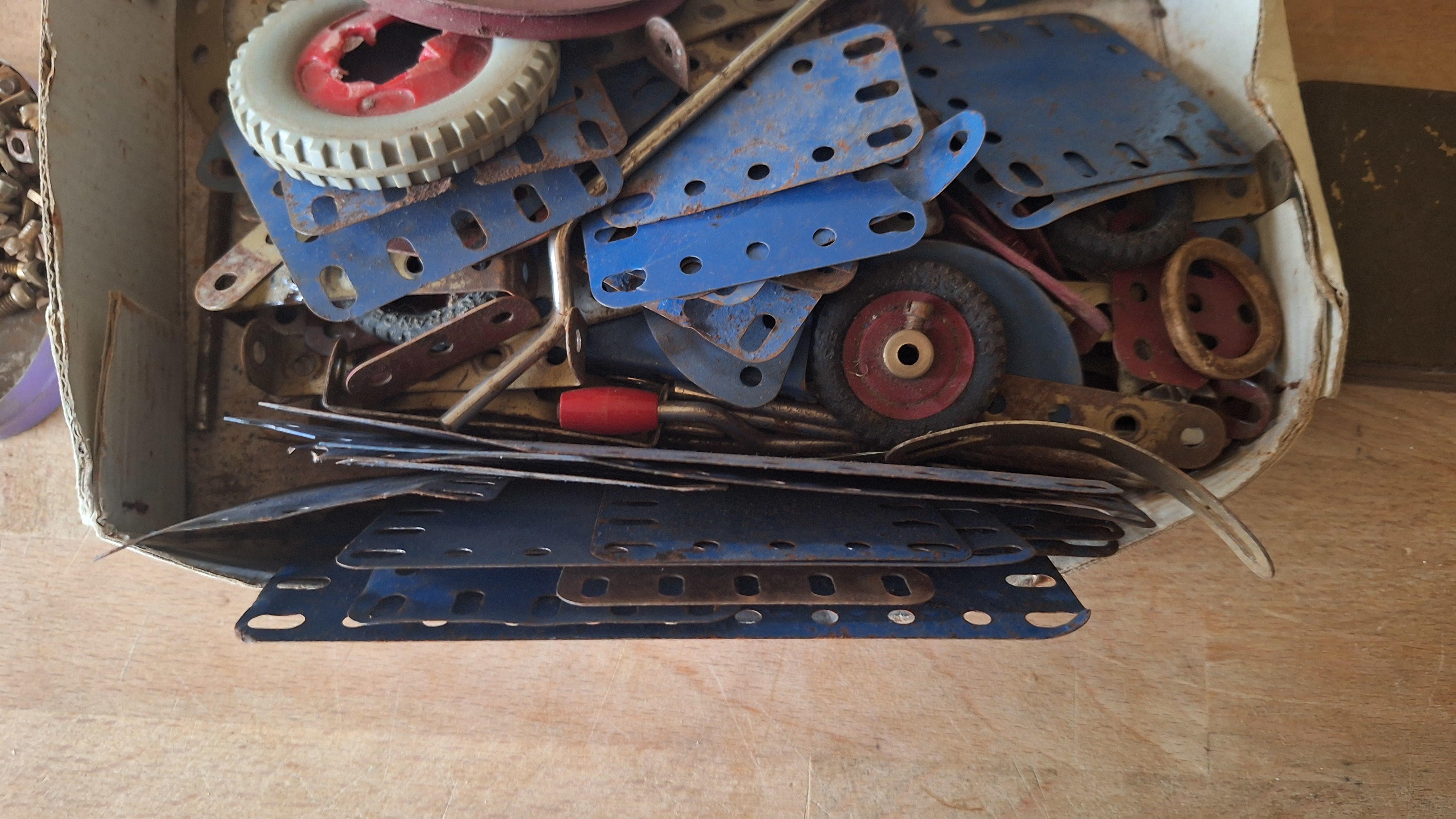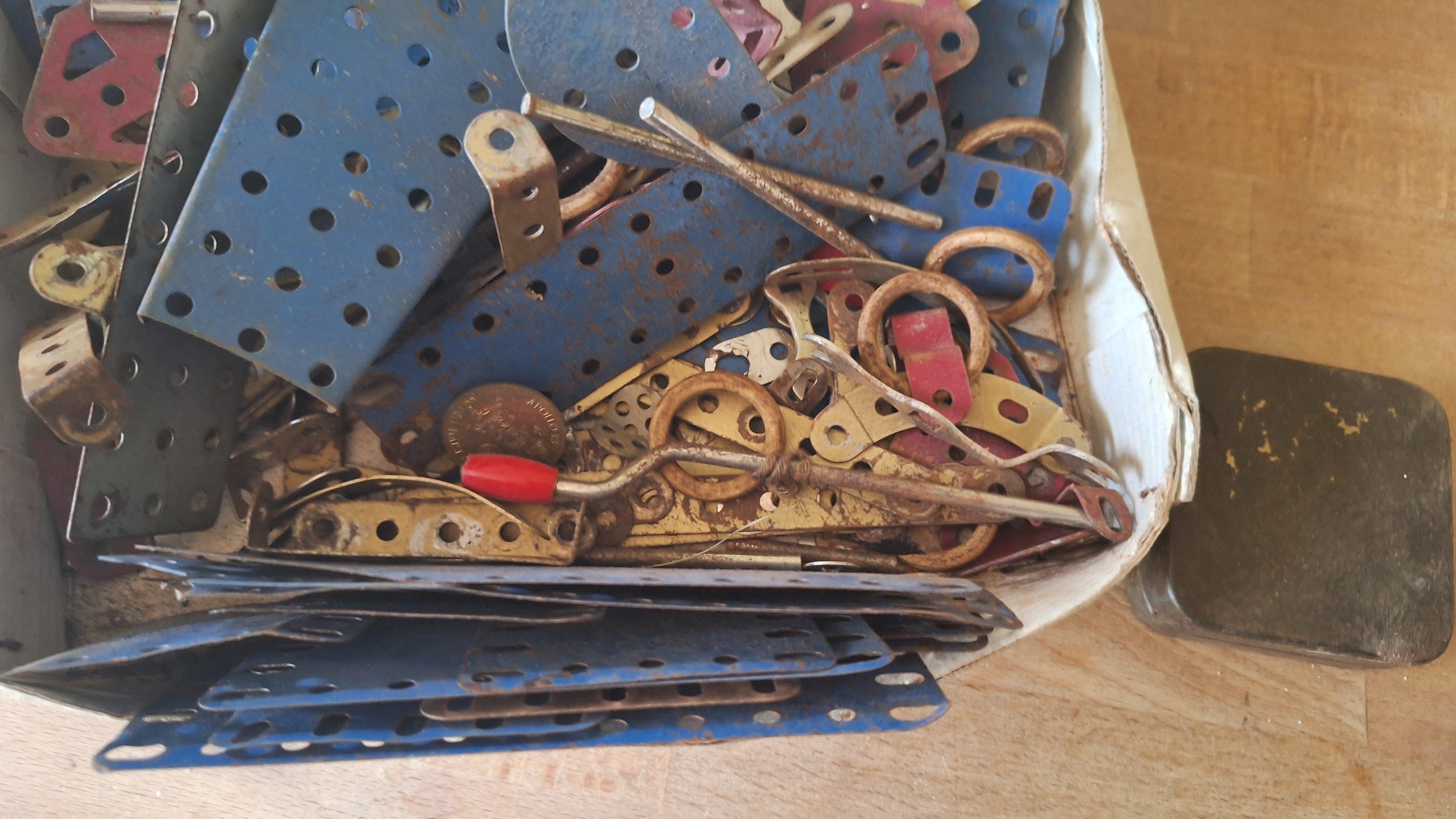 Doos met Meccano onderdelen