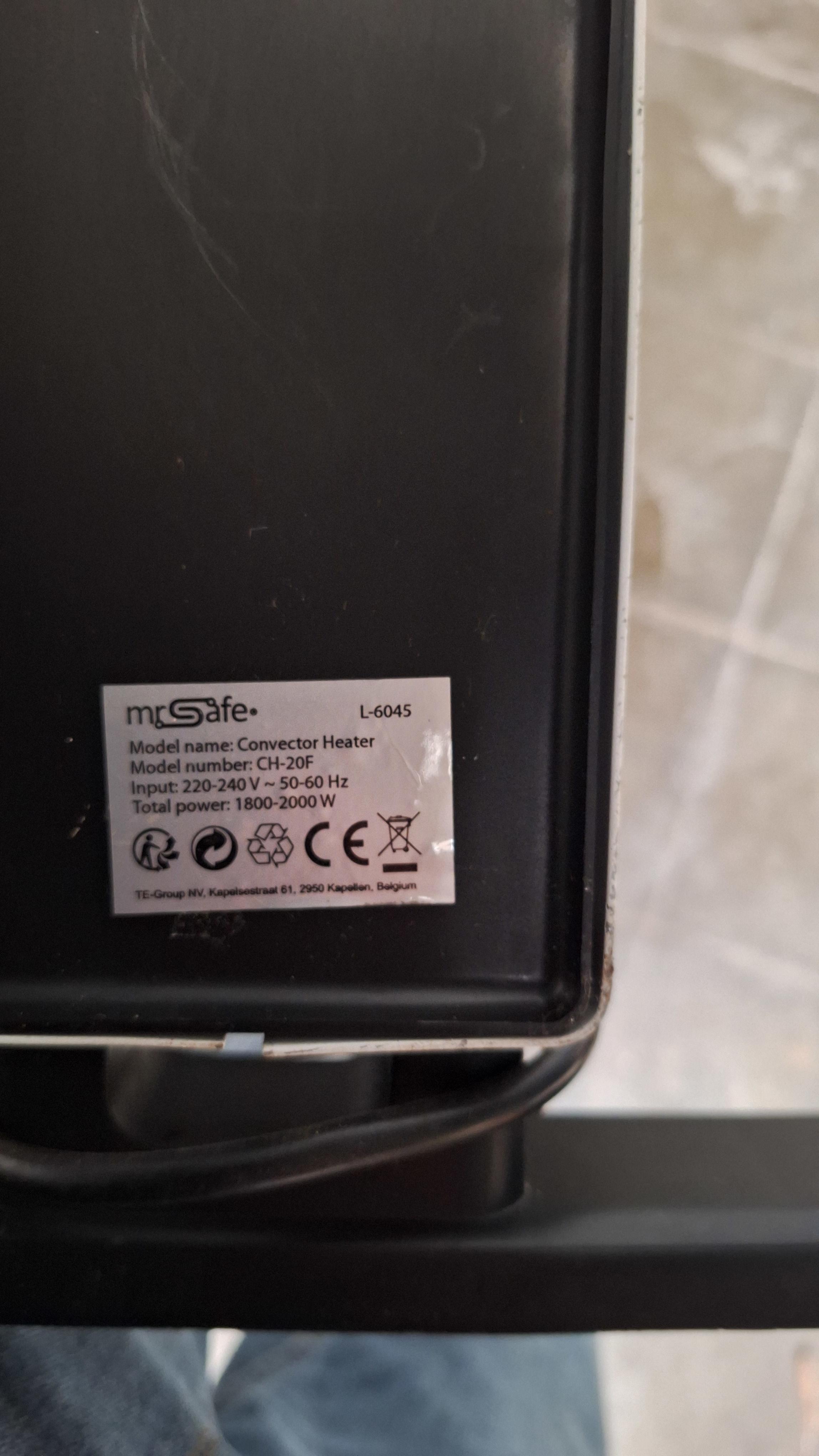 Mr Safe verwarmingstoestel na te kijken retourproduct