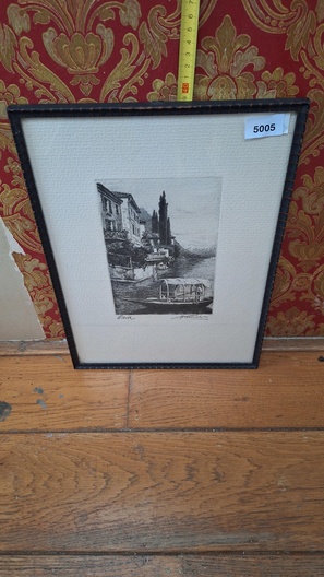 pentekening in kader gesigneerd